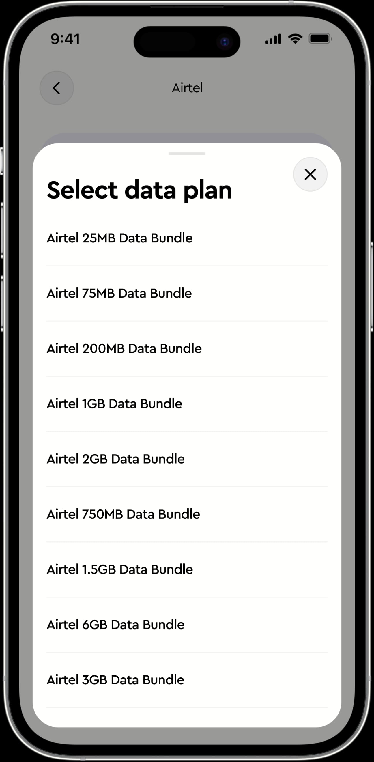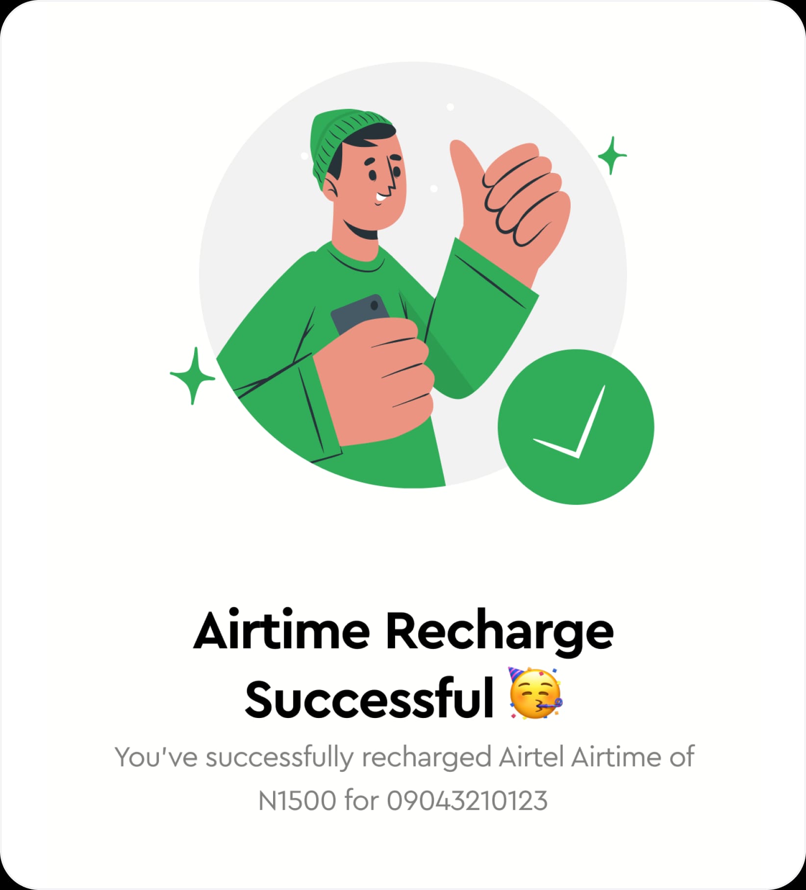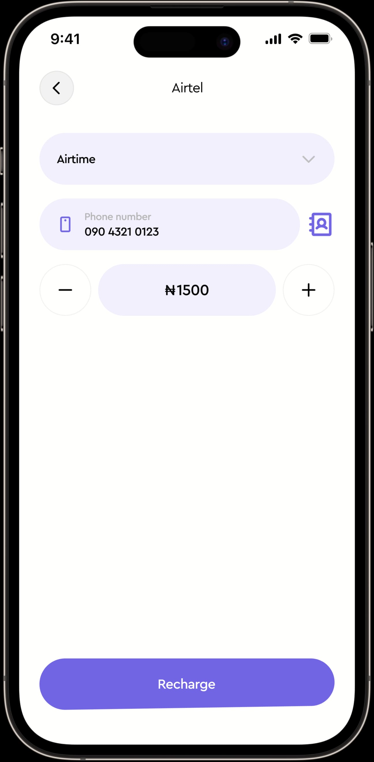 Select your network provider from the list, enter the phone number, specify the amount of airtime or data package you want
